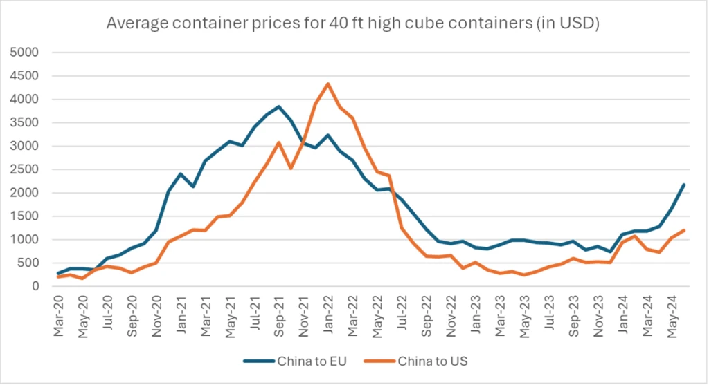 Globally, shipping costs have surged in the first half of 2024, defying the traditional off-season lull